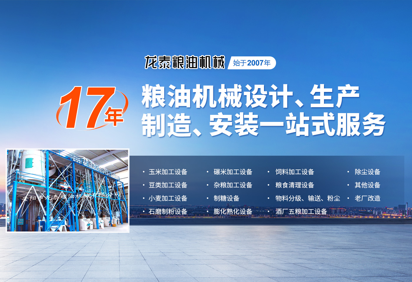 安陽市龍?zhí)┘Z油機械有限公司是一個集糧油機械設計、生產制作、安裝于一體的設備制造商。公司坐落于農業(yè)生產基地河南省安陽市。多年來,公司與科研機構建立了廣泛的技術協(xié)作關系,精心致力于糧食加工設備的技術創(chuàng)新與應用,產品涵蓋整套碾米機械、小麥加工設備、玉米加工設備、雜糧加工設備,飼料加工及油脂設備等多個領域??沙薪尤椎慕昏€匙工程,提供從資金預算,整體規(guī)劃,土建設計,設備制造、安裝、培訓,售后保障等一站式服務?! ∥夜緭碛歇毩⒆灾鬟M出口權及產品原產地注冊證書。產品除國內市場外,多次出口到,亞洲,非洲,南美洲、東歐等多個國家及地區(qū)。為國內外多家企業(yè)提供了工藝先進,技術過硬,節(jié)能的糧油設備,深得國內外客戶的一致好評?! 」疽浴百|量就是生命”為宗旨,根據(jù)客戶不同需求,采用合理的技術方案,為客戶量身打造投資建廠方略,爭取實現(xiàn)高收益。公司生產過程嚴格按照合同和圖紙設計要求,生產符合設計標準、檢測標準、質量優(yōu)良的產品供給客戶,并提供安裝、調試、培訓,保修期免費維修,終身免費咨詢等服務,確保設備在長期使用中穩(wěn)定運行?! ↓?zhí)?愿與您一起攜手共創(chuàng)輝煌!
